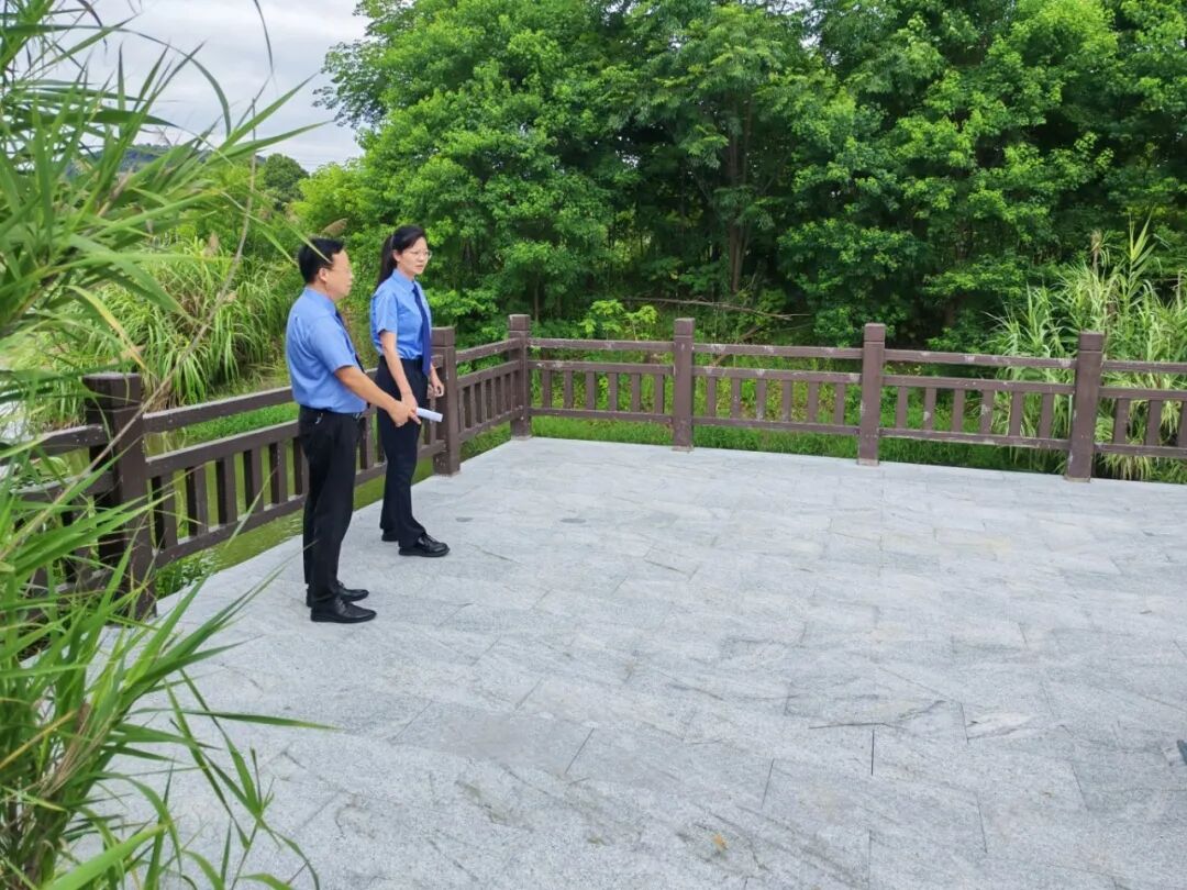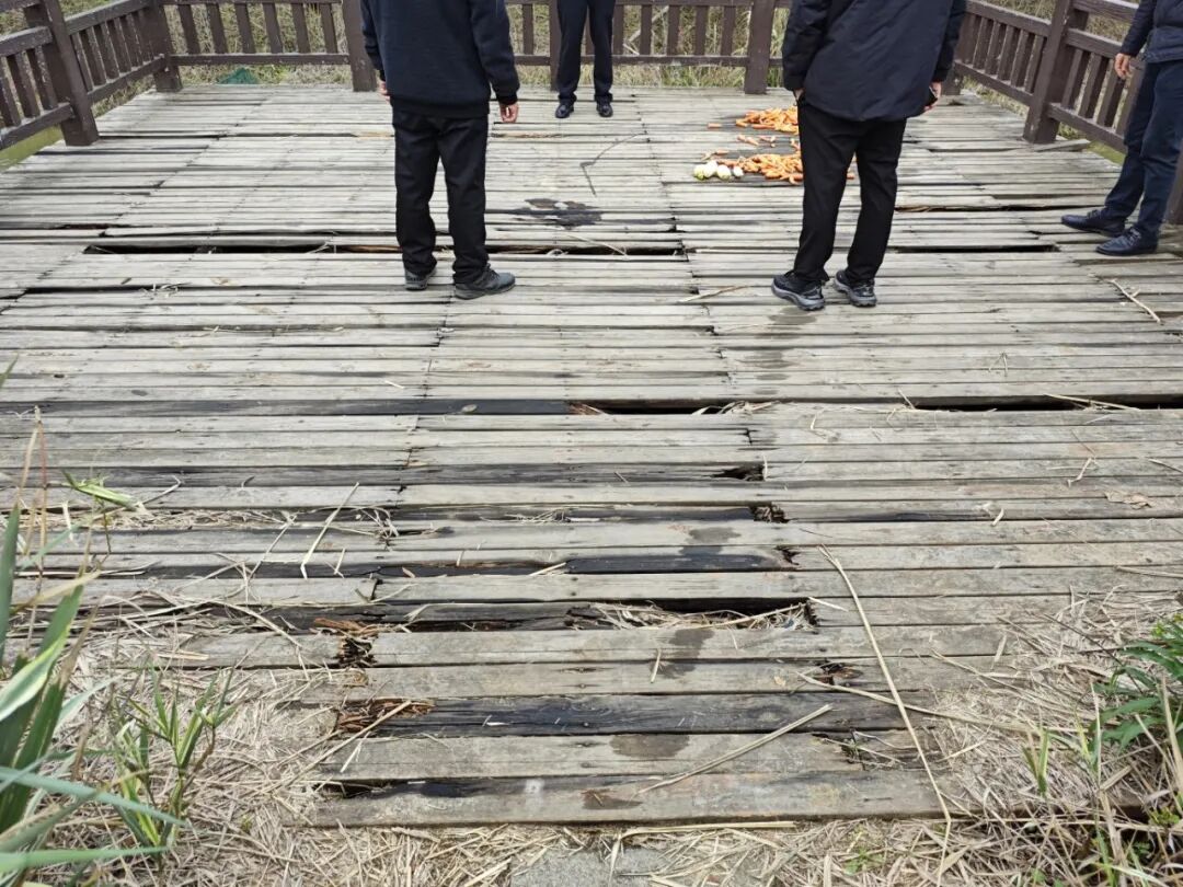 县检察院第一时间着手调查核实公园中存在的各类安全隐患,联合相关行政机关工作人员到现场进行实地走访,发现该公园存在亲水平台及栈道木板严重破损、护栏松动、草地伴有低矮木桩及荆刺、防溺水安全警示牌损坏等安全隐患问题,严重影响市民游玩体验。