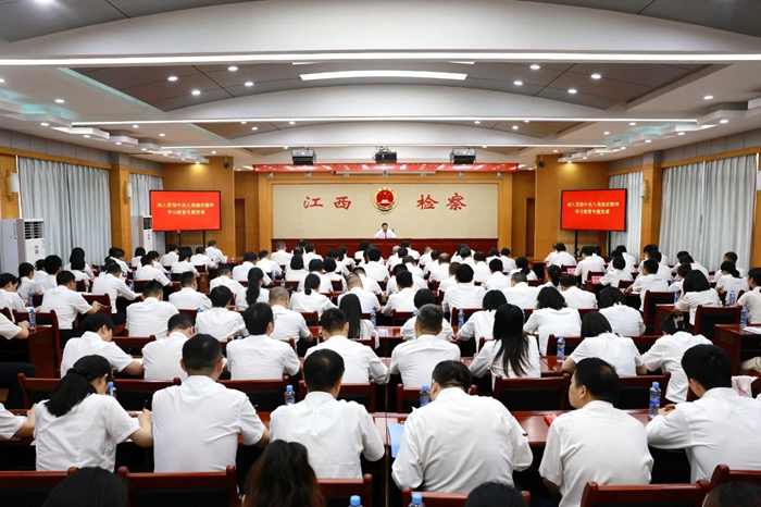 7月1日,省检察院党组书记、检察长丁顺生以“深入贯彻中央八项规定精神 强化履职担当 以严实作风推动江西检察工作高质量发展”为主题,为省检察院机关和派出院全体干警讲学习教育专题党课。